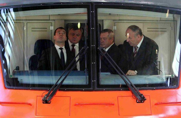 передача заказчику ОАО “Российские железные дороги” нового электровоза пятого поколения ЭП 20 №001. В церемонии также принимали участие Губернатор Ростовской области В. Ю. Голубев, руководители Трансмашхолдинга и французской компании Alstom. Перед началом торжественной церемонии высокие гости посетили основные цеха завода, где Генеральный директор НЭВЗа С. Ф. Подуст познакомил их с производственным процессом изготовления электровозов. В экспериментально-аппаратном цехе на участке сборки пультов Дмитрий Медведев пообщался с бригадой электромонтажников, Премьер-министр интересовался жизнью коллектива, условиями труда, заработной платой рабочих. О том, как собирают пульты машинистов, премьер-министру рассказала электромонтажник-схемщик Белякова Г. Н. Торжественный митинг проходил в электровозосборочном цехе №1, на ж/д путях этого цеха были представлены образцы подвижного состава выпускаемого НЭВЗом – ЭП 20 № 001, новый грузовой электровоз 2ЭС5, “Дончак” № 100 и трехсекционный электровоз “Ермак”. Митинг открыл директор по управлению персоналом, социальной и региональной политике В. А. Скрага со словами -