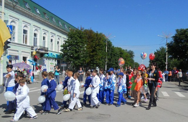 09.45 — торжественное шествие колонны спортивных коллективов города по ул. Московской (от пересечения ул. Московской и ул. Им. ген. А.И. Лебедя до площади у памятника М.И. Платову)